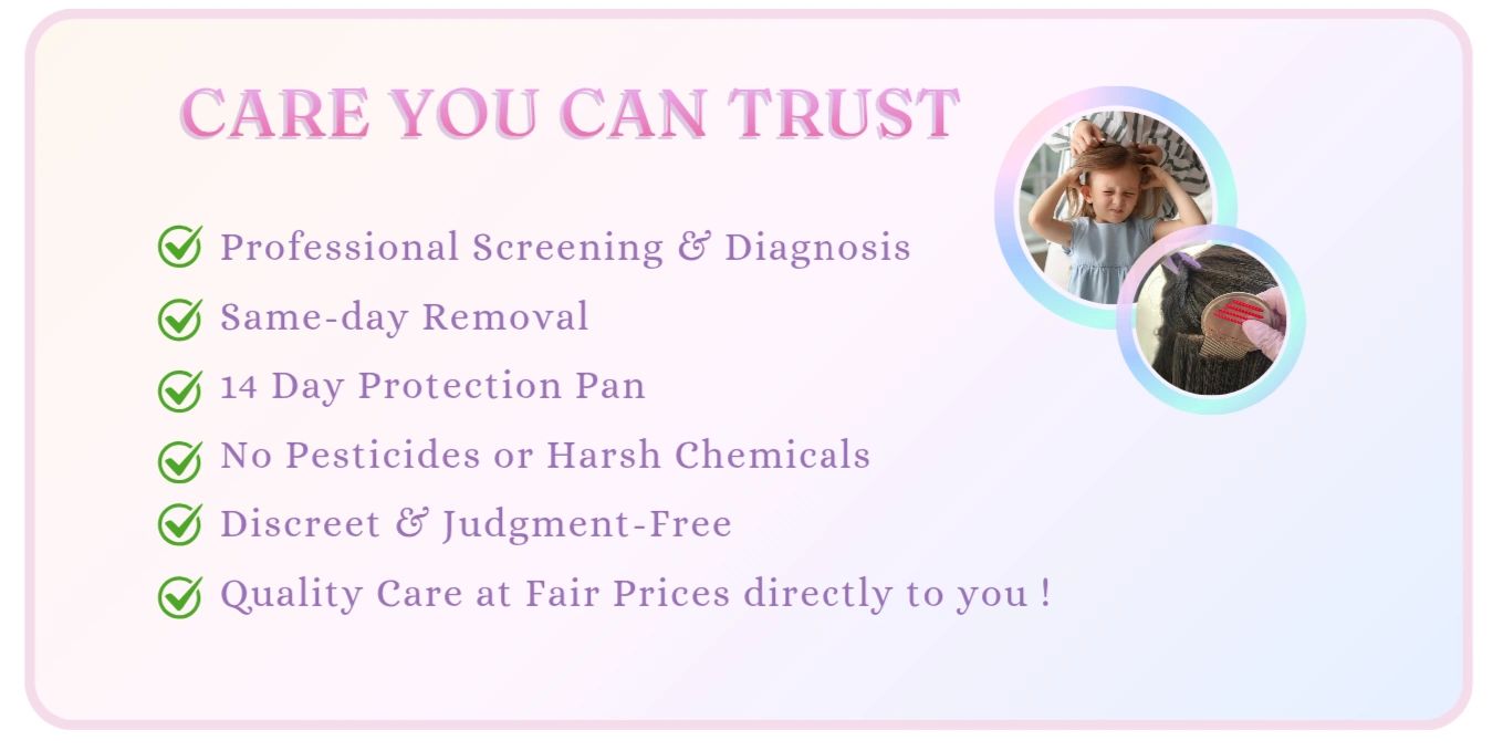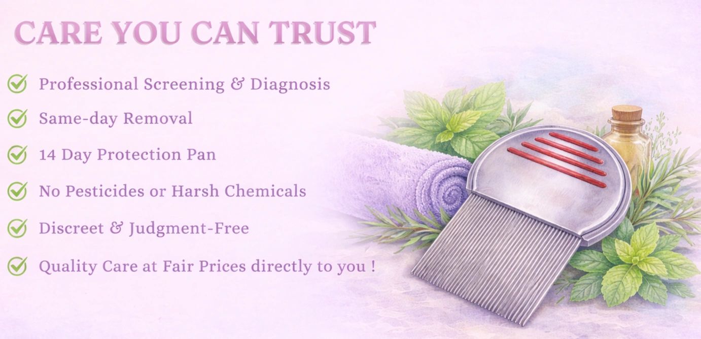 - Clinic-quality results — professional methods more effective than OTC treatments, using non-toxic lice treatment options.